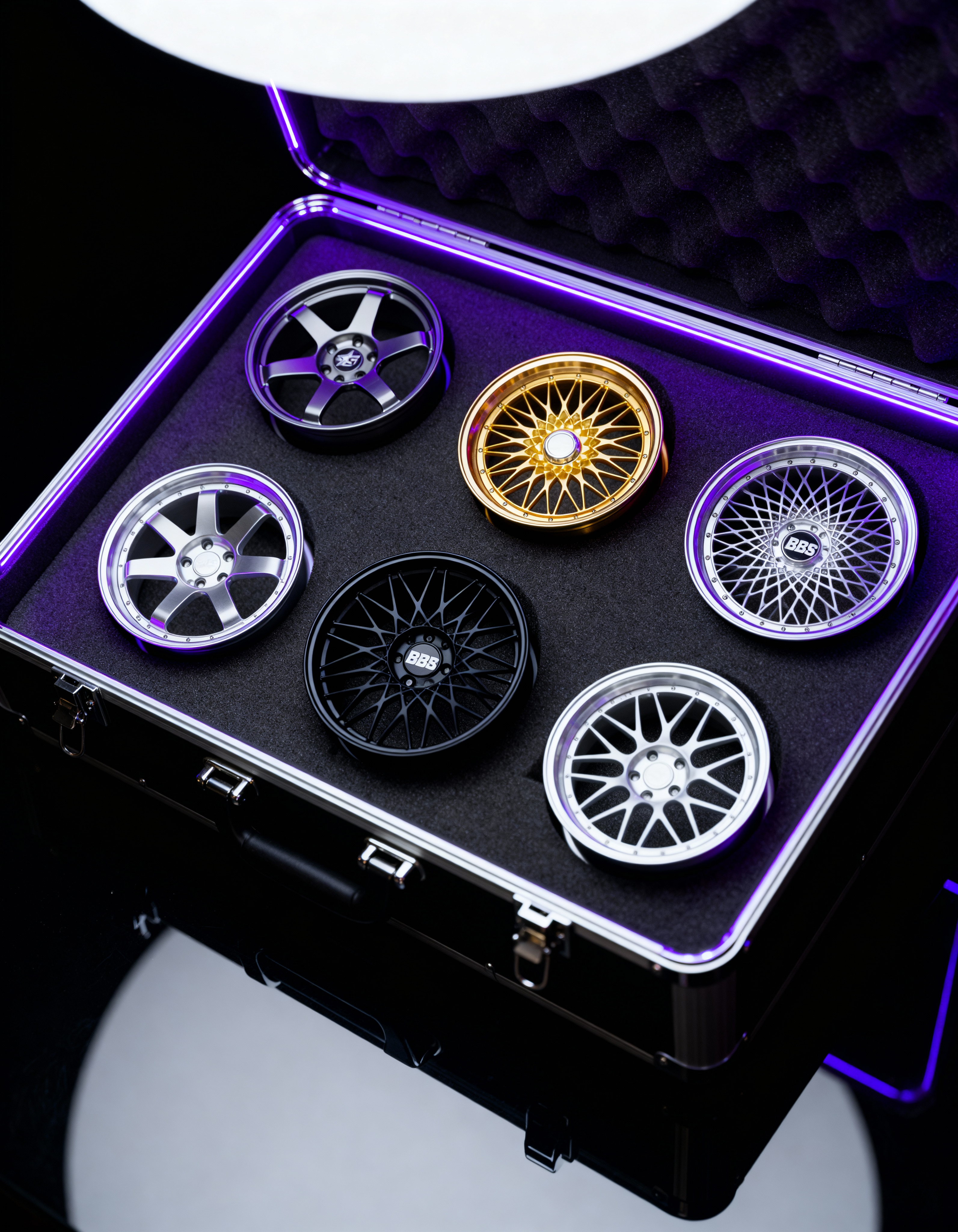 As the original rims, we took the detail to scale size by incorporating the removable center plates matching the design with the original rims logo.
